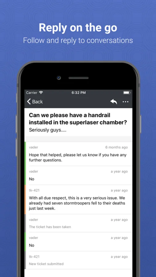 Jitbit Helpdesk for iOS allows you to access your help desk from your device. We know that many people are away from their PCs quite often and we wanted to offer a solution so that you could stay productive on the go.