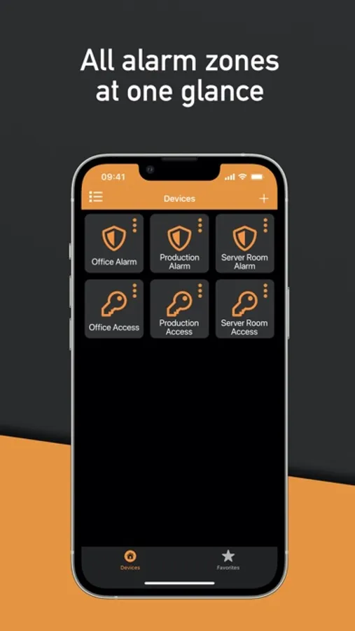 The KentixONE APP is the mobile security and alarm center. With it, you always have an overview of the security situation of your company. The app shows you at a glance whether everything is OK and secure, or your intervention is necessary.