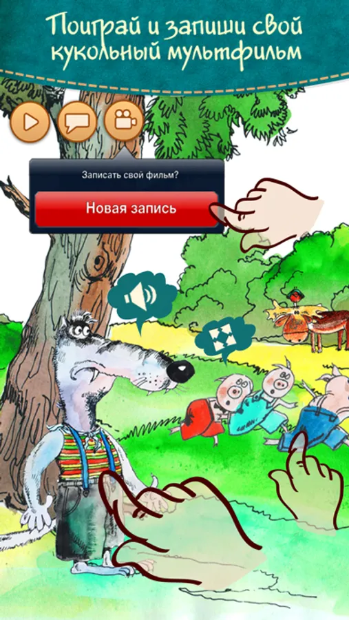 - новая технология – создай свой мультфильм легко и просто: нажми запись и создай свою версию сказки.