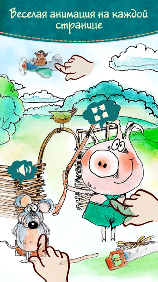 Эта «живая» сказка-игра покорит юных читателей веселыми анимированными персонажами, развивающими играми, возможностью прочитать или прослушать сказку. Также ребенок может легко, играя, записать свой мультфильм. Для самых любопытных есть возможность послушать сказку на нескольких языках: русский, английский, украинский.
