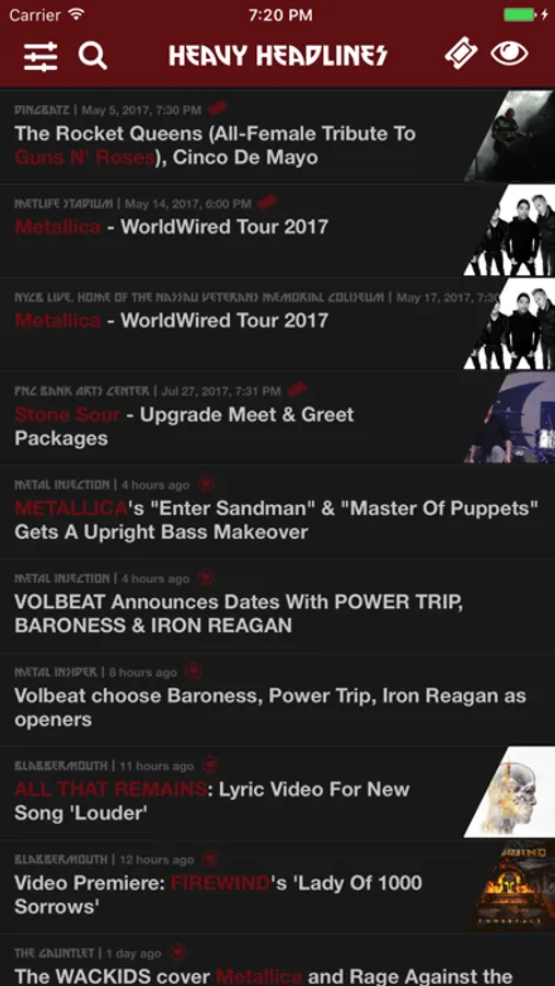 - Concert Tickets! Heavy Headlines automatically finds upcoming shows in your area featuring your Favorite Bands and even lets you purchase tickets for them right through the app.