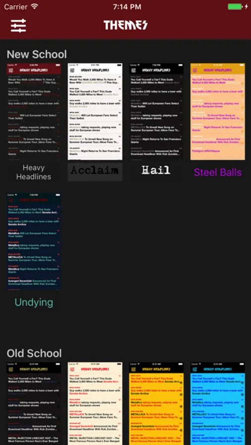 - Don't like the default look of the app? Heavy Headlines comes packed with over 20 different themes inspired by iconic metal album covers.