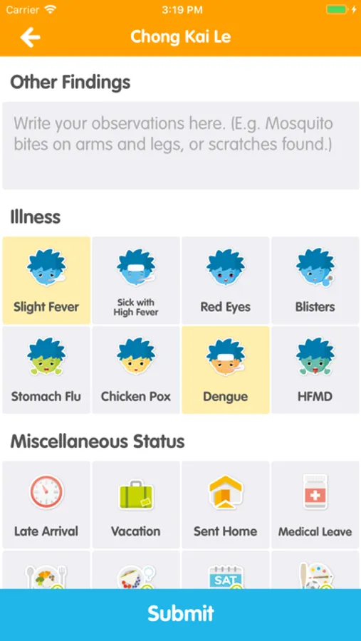 + Automatically records the time the students arrives and leaves school with their caregiver.