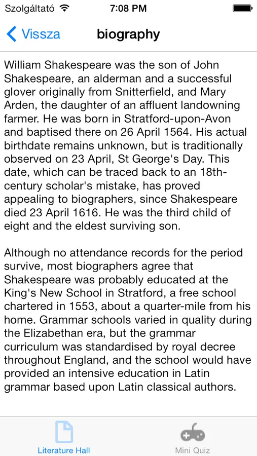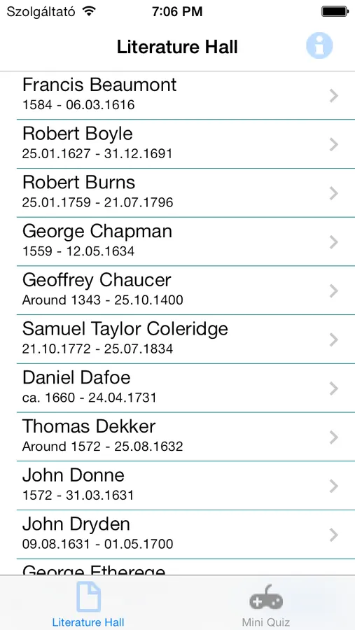 The app also contains a small trivia, which helps to test your knowledge about the lives and works of the writers and poets listed in the app.