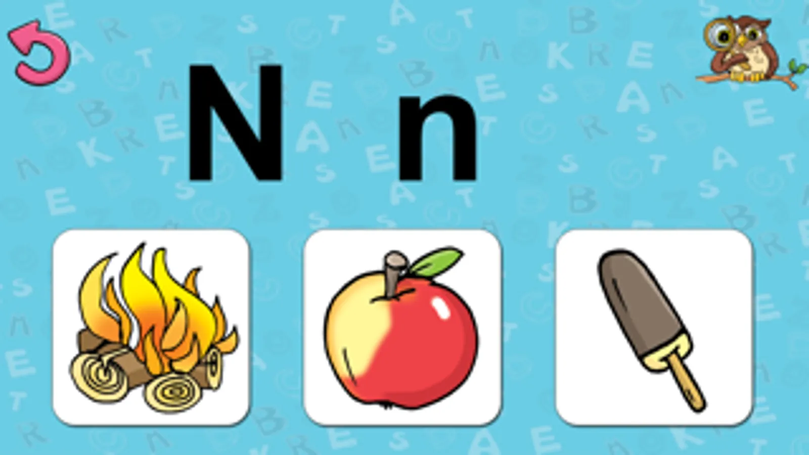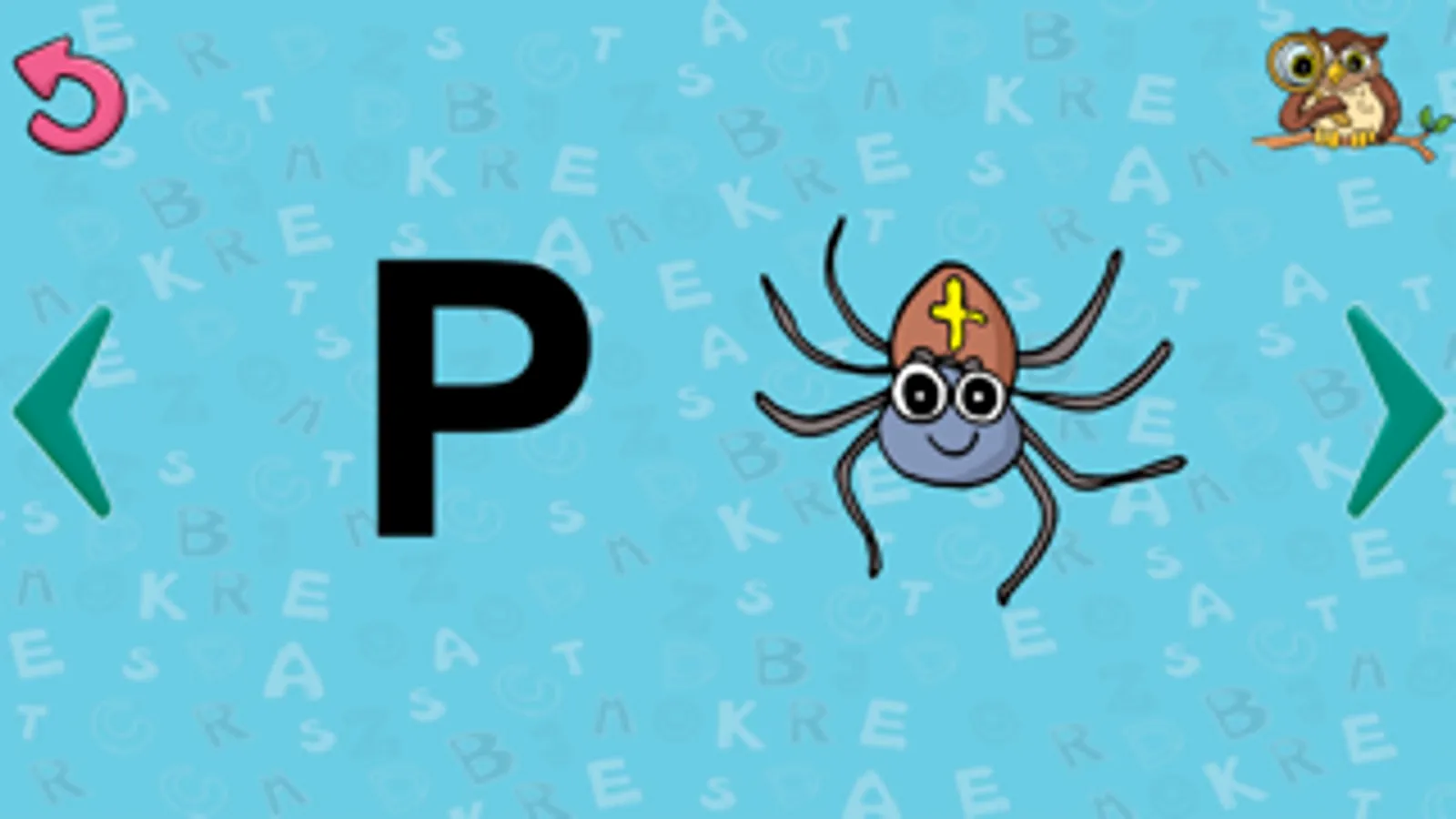 Úkolem v této hře je ukázat na obrázek, který začíná na zobrazené písmeno.