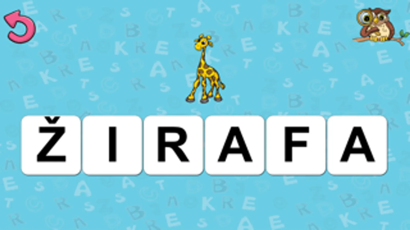 Děti v této hře otáčejí políčka a postupně tak sestavují slovo namalované na obrázku. Obrázek je schovaný (za oponou) a s každým novým písmenkem se trochu poodkryje. Po otočení všech písmenek se přečte vytvořené slovo a ukáže se celá ilustrace.