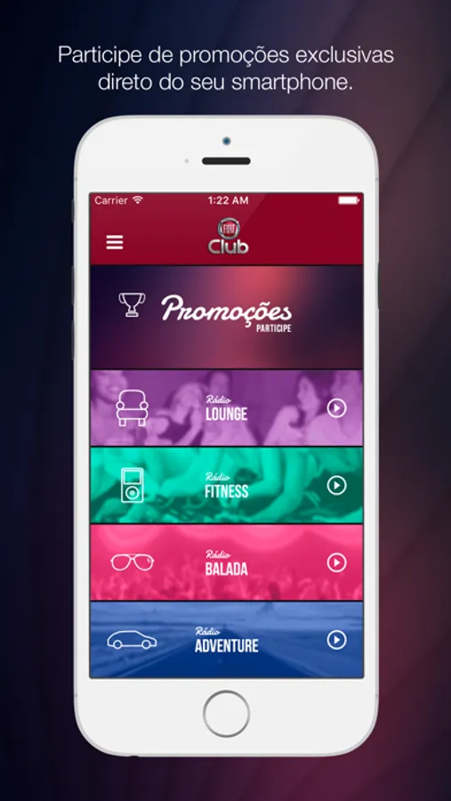 A Rádio Fiat Club traz na sua programação uma seleção especial de músicas nos mais variados estilos, além de prêmios exclusivos.