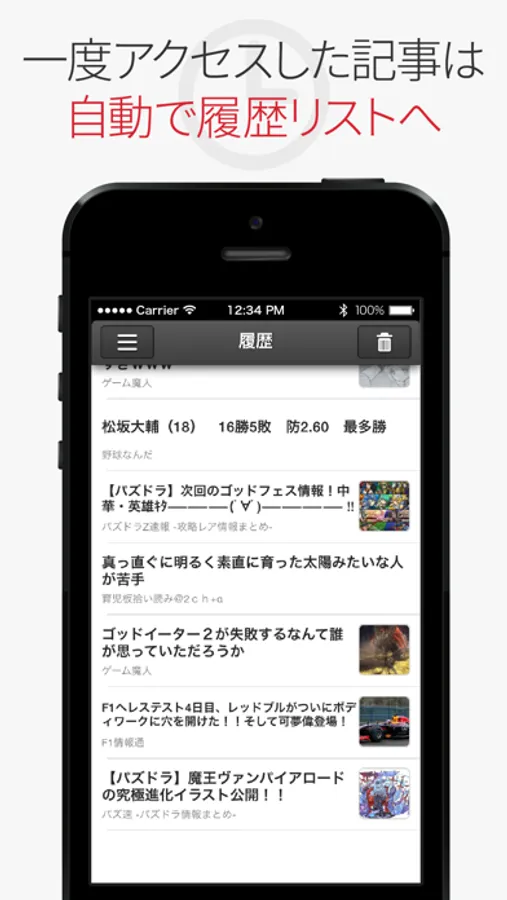 途中で読むのをやめた記事も自動的に「履歴リスト」に格納されているので、