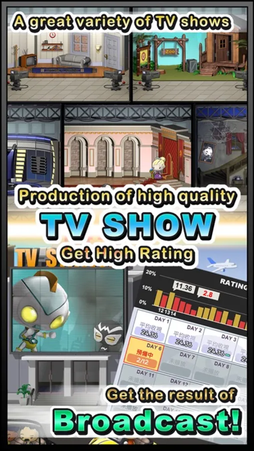 All new simulated game created especially for you to establish your own TV station! Building studios, recruiting artists, producing TV programs!