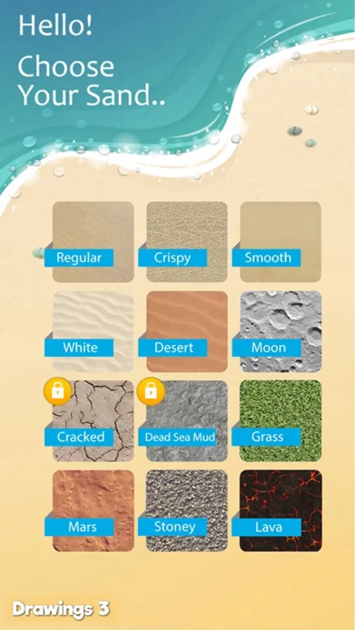 You can draw on rocky sand, lava sand, dead sea muddy sand, grassy sand, white sand and many more.