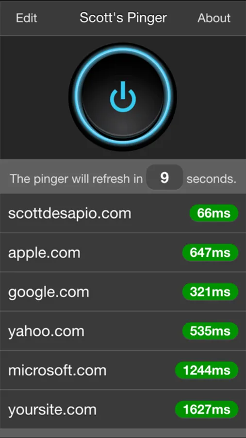 "Scott's Pinger" is a simple on-demand website status checker. As a web developer, I was looking for a simple way to check site status and response time on the run so, I built "Scott's Pinger."