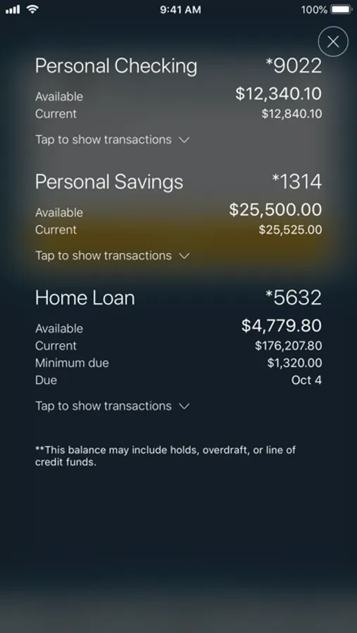 • Check available balances & transaction history