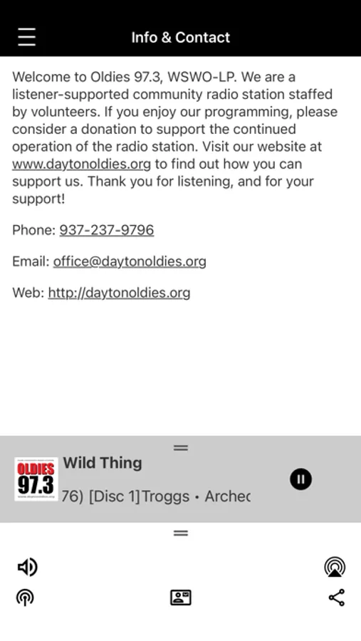 Live streaming audio from Oldies 97.3 WSWO-LP, a listener-supported and volunteer-operated community radio station in Huber Heights, Ohio. We preserve the great music of the 50's, 60's, and 70's, presented with live, local announcers. We also broadcast live coverage of Wayne High School sports and community events.