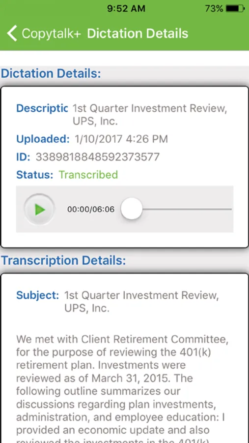 Copytalk+ is a free application add-on for use by subscribers to the Copytalk Mobile Scribe service. In addition to the normal dictation phone numbers, the application allows users to record dictations on any IOS-enabled device.
