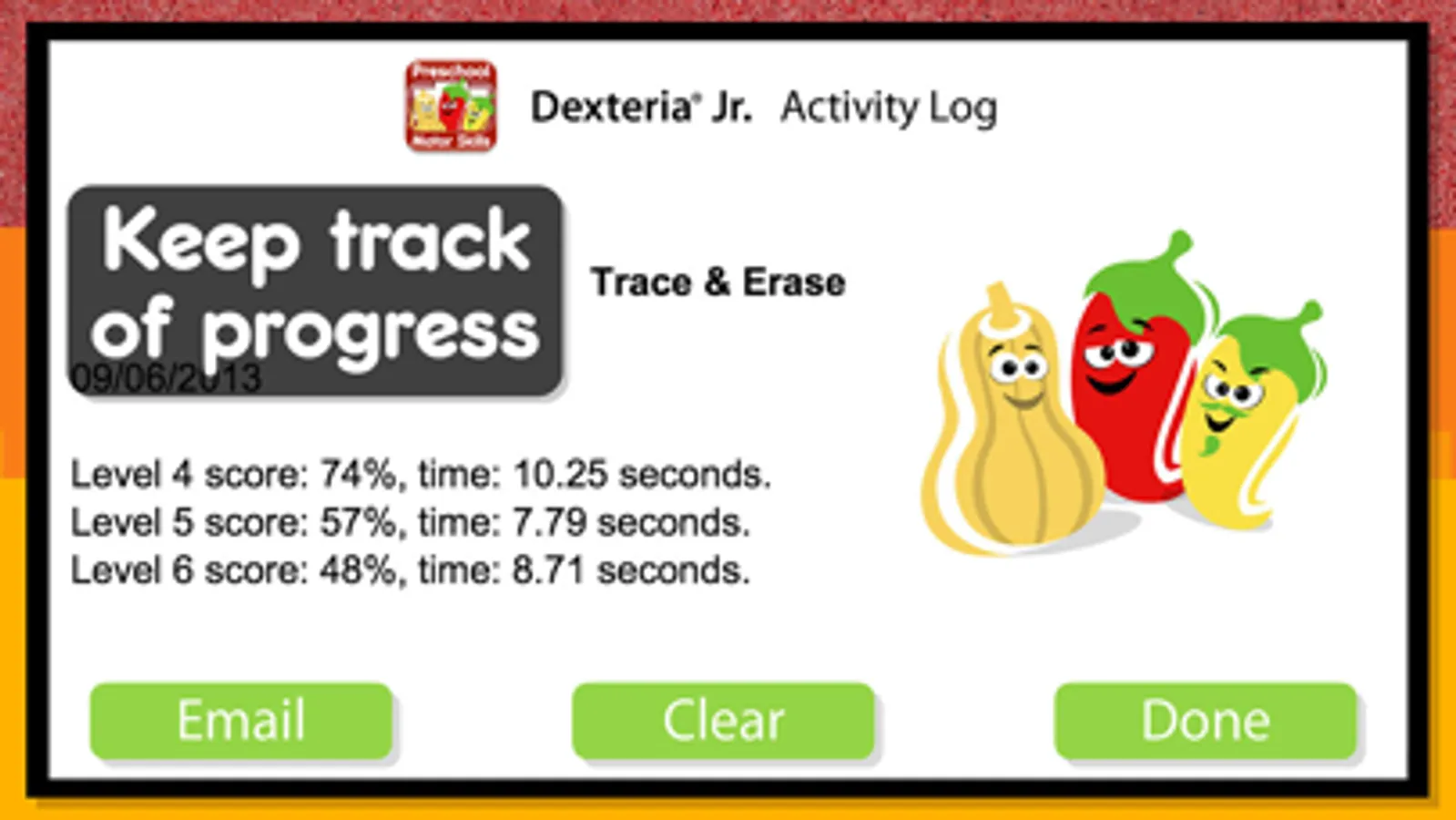 The automatic tracking and reporting feature makes it easy for parents, teachers and occupational therapists to identify time on task and progress. You can email the progress reports right from the app itself.
