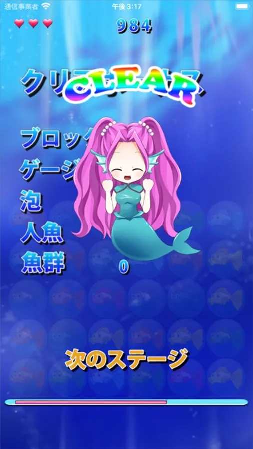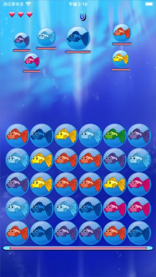 魚を自由に動かして同じ色を縦か横に3つ並べると救出できます。