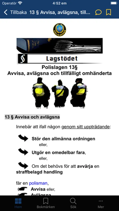 PolisAppen är ett hjälpmedel som synliggör en polismans skyldigheter och rättigheter i det vardagliga polisarbetet!