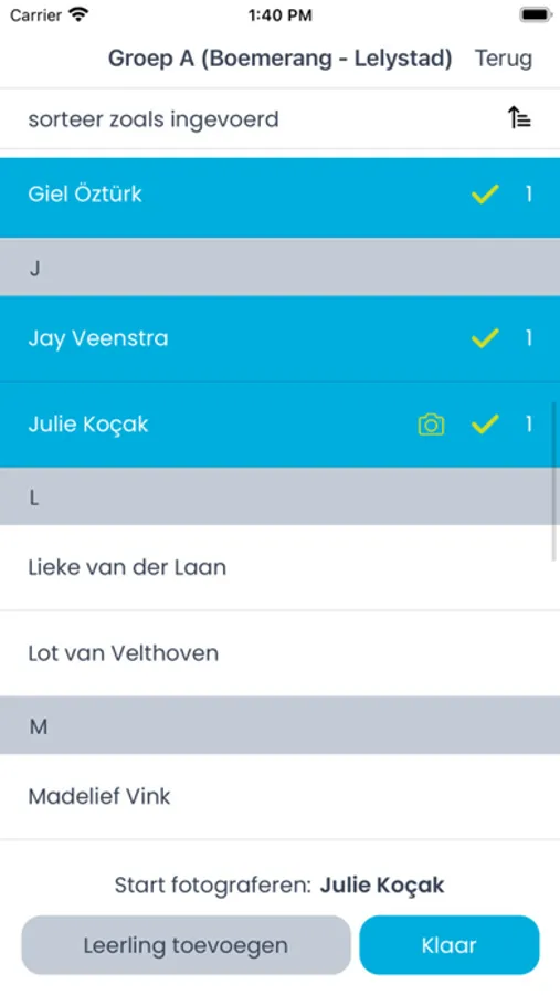√ Selecteer tijdens de fotoshoot telkens de betreffende leerling uit de leerlingenlijst van de school.