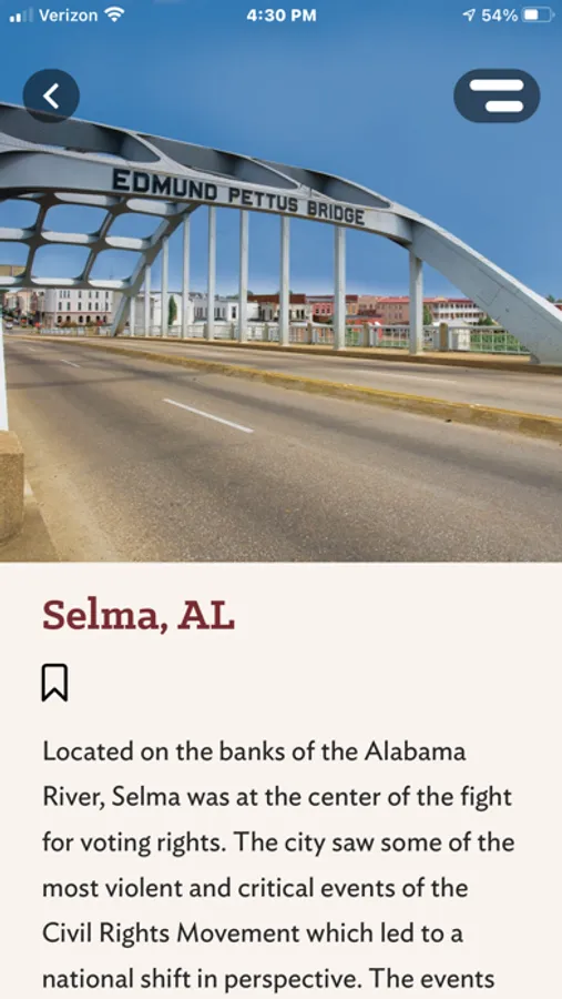 - Share your location to see destinations near you that you can visit to learn more about civil rights history
