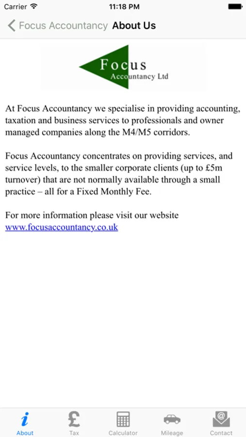 This app is brought to you and your business compliments of Focus Accountancy Ltd and is developed by Tax Apps Limited.