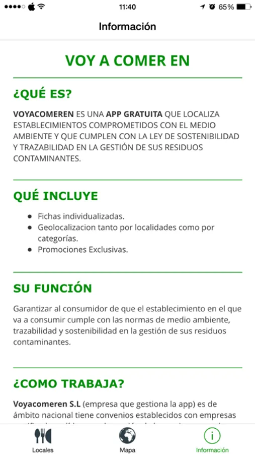 Voy a comer en es la primera aplicación que recoge una guía de establecimientos certificados en sostenibilidad y responsabilidad corporativa.