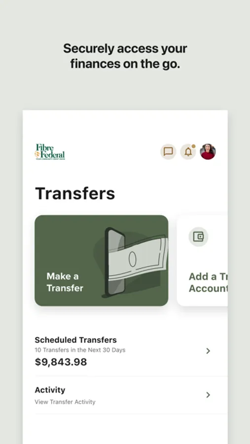 Get the free Fibre Federal/TLC Credit Union Mobile Banking app and access your accounts anywhere, anytime from any mobile device. You can check your available balances, view transaction history, transfer funds between accounts, find ATMs and branches in your area, find a free ATM wherever you go, check out our current rates, and more.