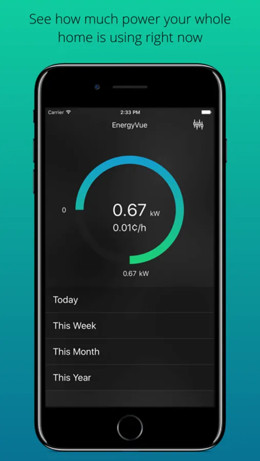 EnergyVUE allows you to view your smart meter's real-time energy usage via the EAGLE gateway. It shows your whole home's Instantaneous Usage, Day/Week/Month/Year graphs, and text messages live from your smart meter.