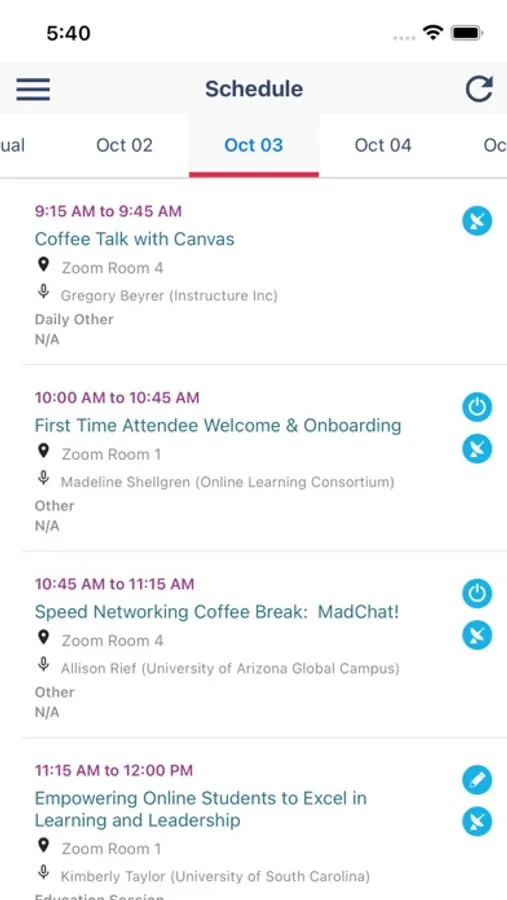 • View session information and presenter listings