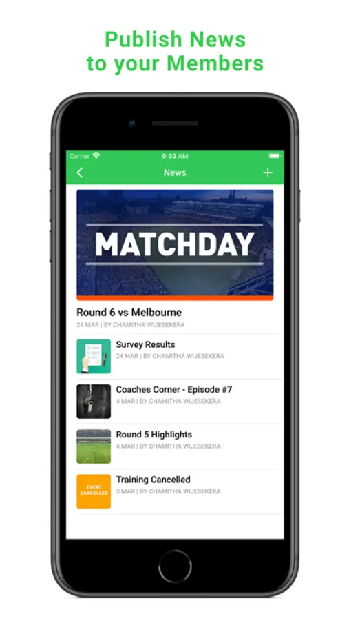• Send news, events, photos and videos instantly to your members' smartphone via push notifications.