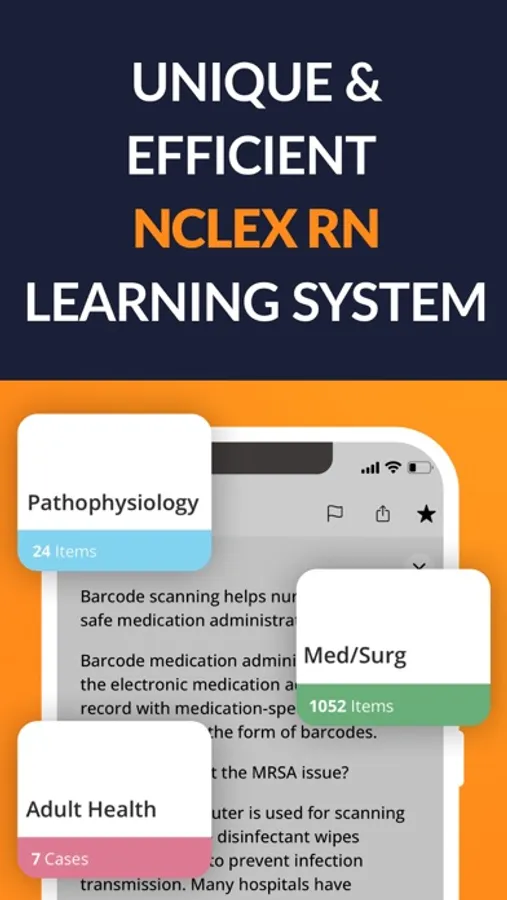 Unlock access to 3,000+ NCLEX questions and simulated testing experiences. Our learning system is designed for optimal study efficiency. Try it for free with 10 daily questions and see why 2.5 million aspiring nurses trust NCLEX Mastery for their exam preparation.