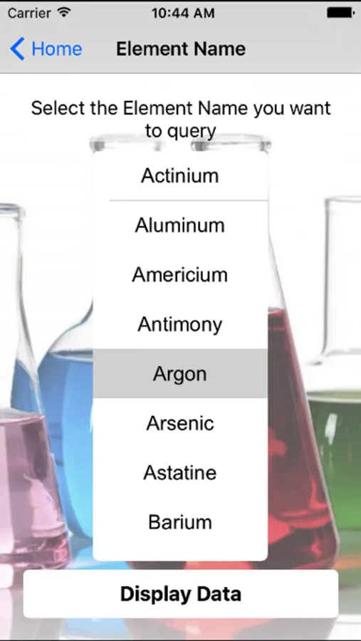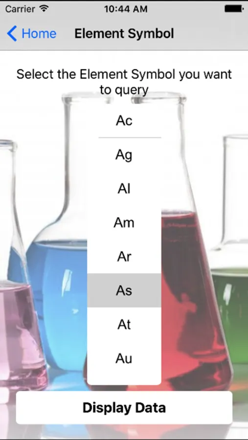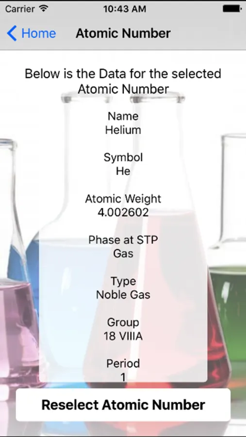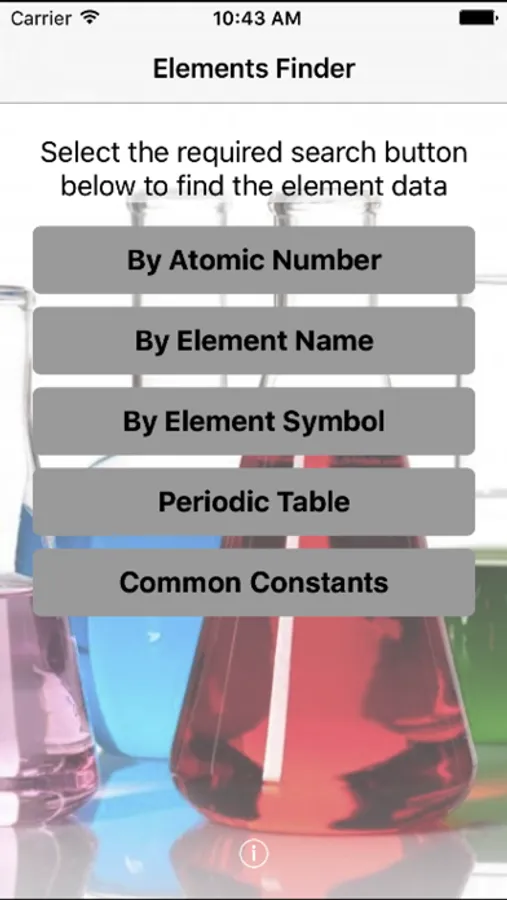 The app allows you to search for a specific element by its Atomic Number, Element Name or Element Symbol. Once you have selected an element it will so you the other data relating to that element.