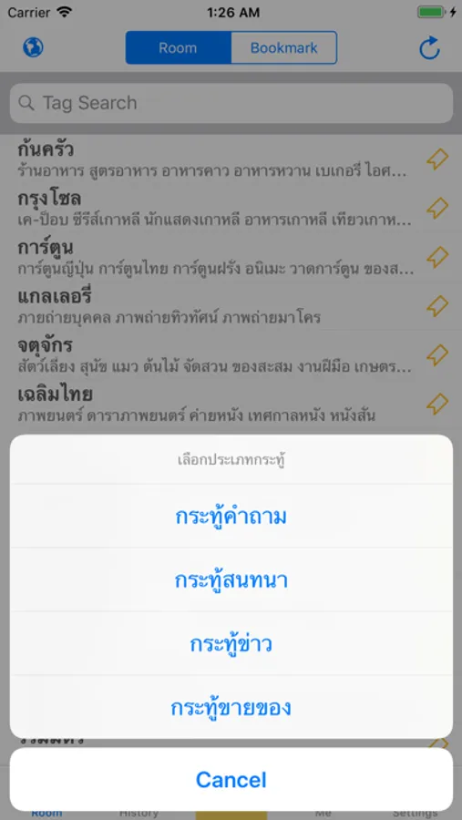 ** ในกรณีมี ห้องใหม่, Tag หรือ Club เพิ่ม สามารถทำการโหลดใหม่ได้ โดยไปที่ Settings > Update Room/Tag/Club