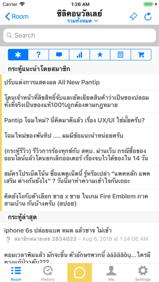 - เลือกอ่านเฉพาะประเภทของกระทู้ได้ (กระทู้คำถาม/สนทนา/โพล/รีวิว/ข่าว/ขายของ)