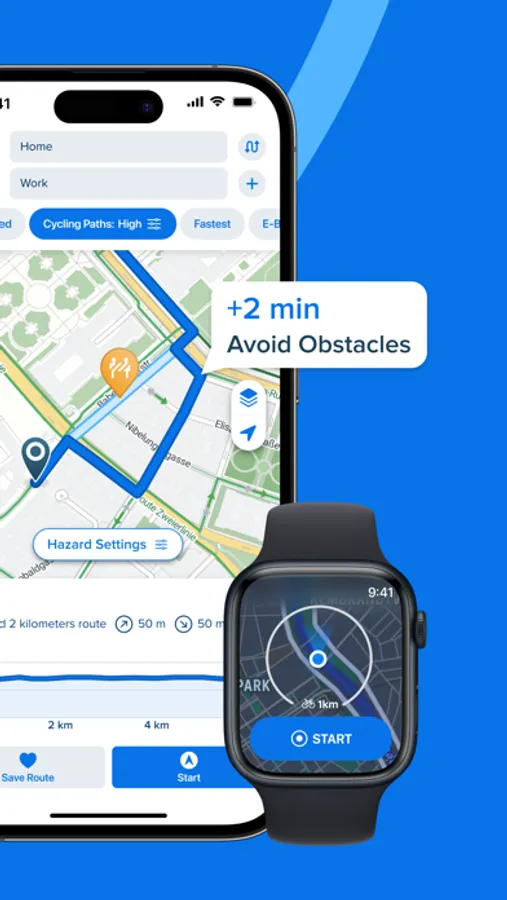 • Bike-Type Optimized Routing: Optimize the route for your bike type and cycling style. Give priority to cycle lanes and bike trails.