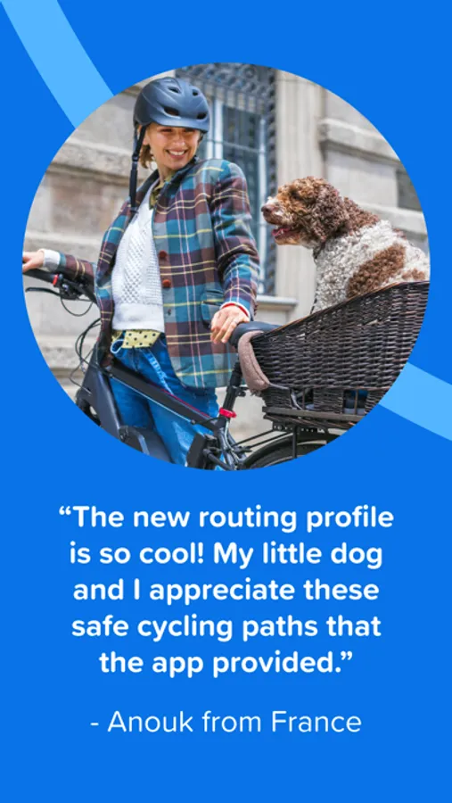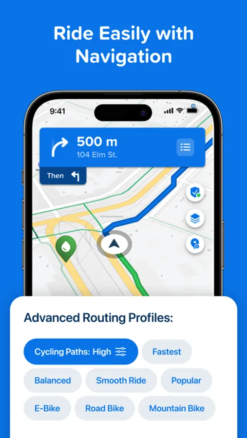 • Get real-time biking stats alongside your navigation—current speed, biking distance, duration, elevation, and the ETA.