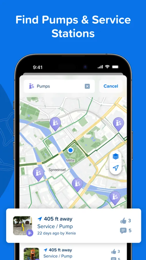 • Help out fellow cyclists by reporting obstacles, hazards, and amenities on your route.