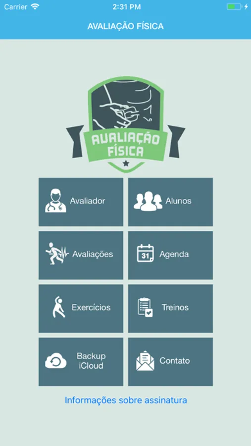 App Avaliação Física inclui compras "in-app" com opção de assinatura com auto-renovação que libera o cadastro ilimitado de treinos e avaliações.
