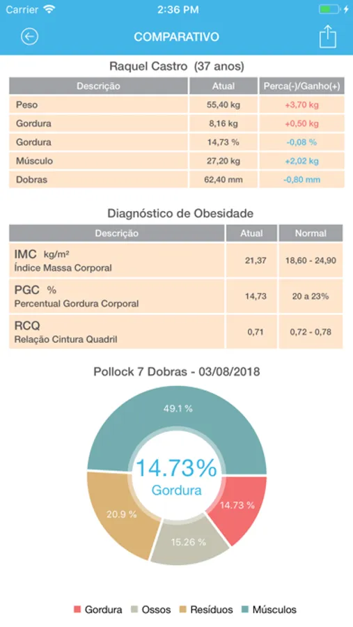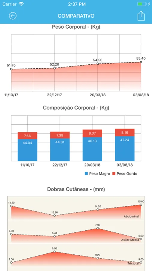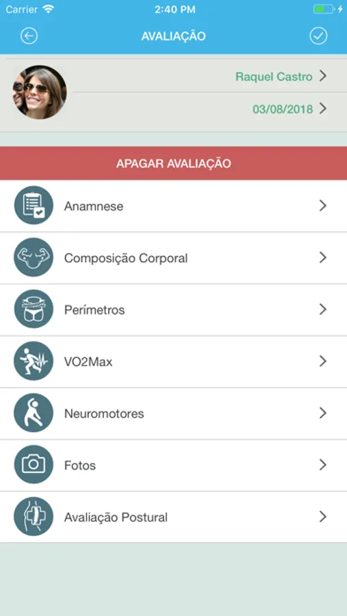 Nesta app você pode cadastrar alunos e realizar suas avaliações físicas para controle da Anamnese, Perimetria, Composição Corporal, Testes de VO2Max, Testes de Flexibilidade, Comparativo de Fotos, Personalização de Logomarca, Testes Neuromusculares, Avaliação Postural e vários relatórios.
