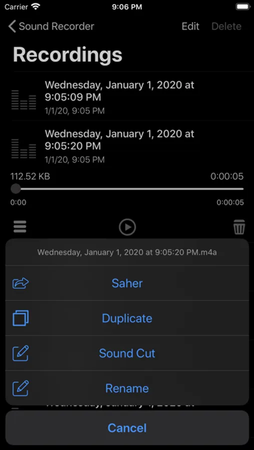 - Recorded sounds can be renamed.