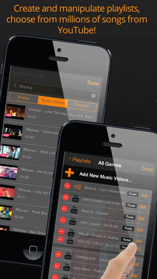 - The ability to create custom playlists with songs from your music library or directly from YouTube