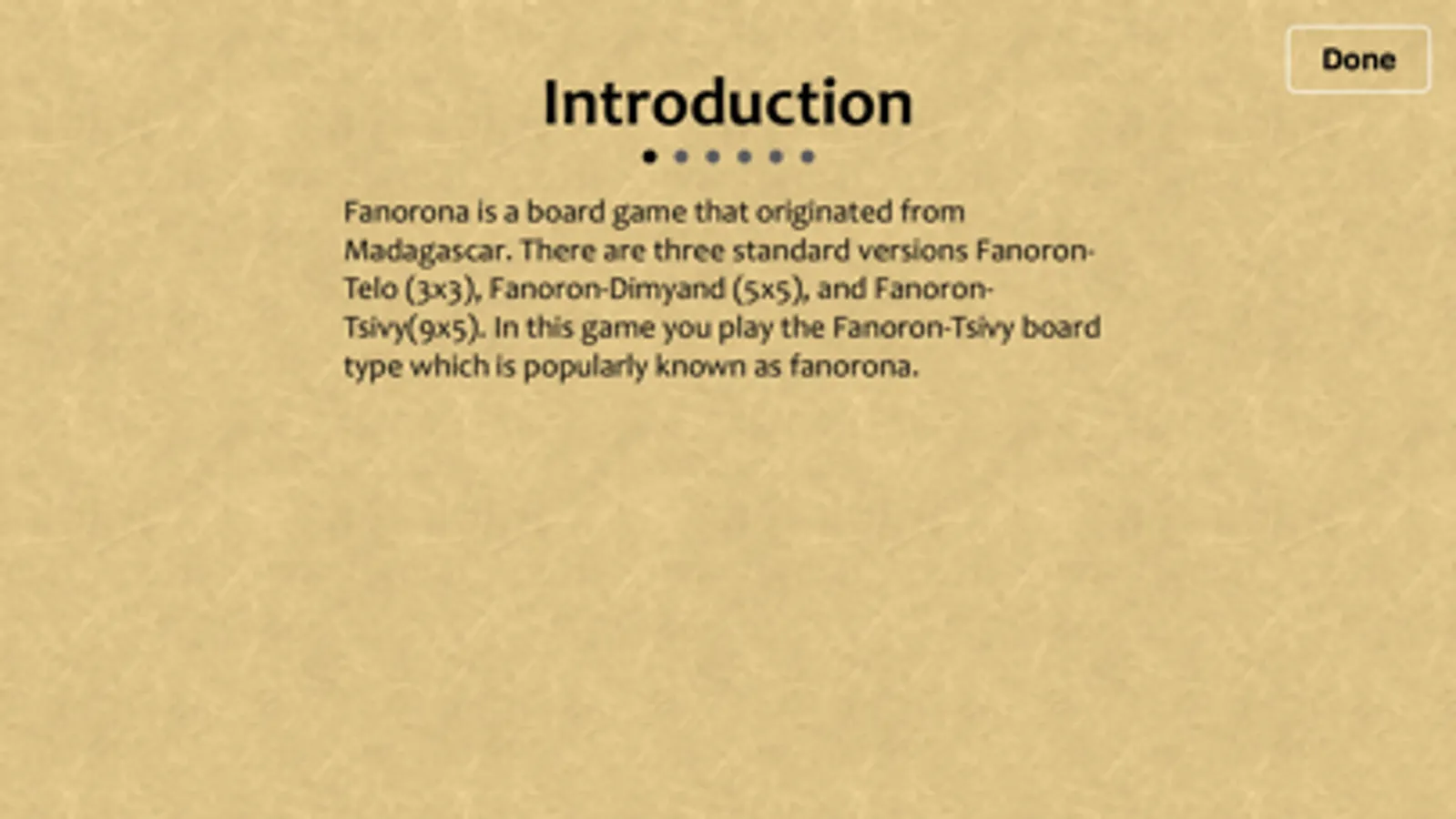 Fanorona is a classical two-person strategic game that comes from the island of Madagascar. It has a unique method of capture which sets it aside from similar board games like checkers. Rules are easy to learn and details are provided in the game. It also has a legend, download the game to find out...