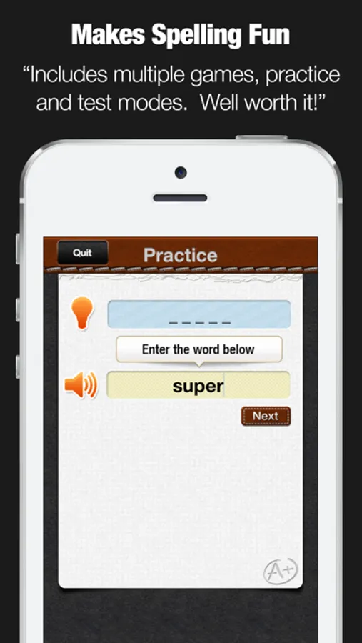 ● Practice spelling on the go. This app is perfect for using no matter where you are.