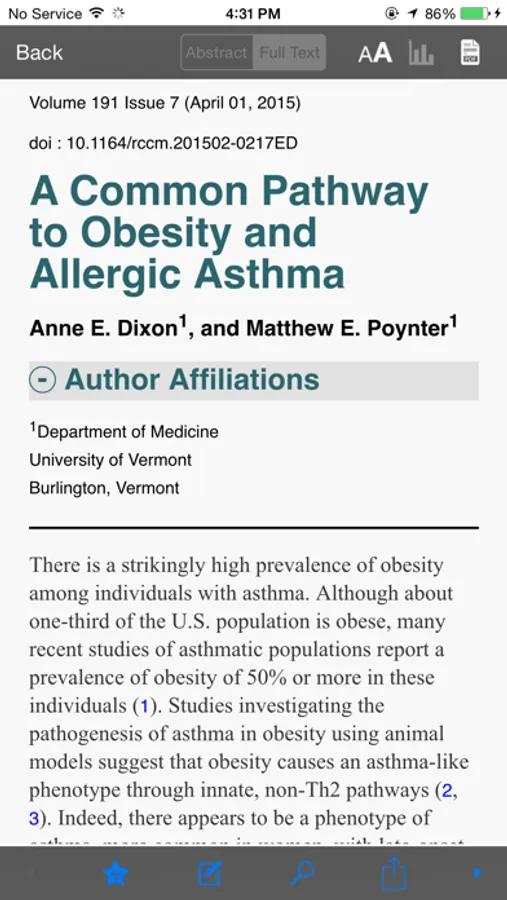 Seamlessly explore abstracts and articles from the official journals of the ATS, optimized for your iPad, iPod Touch, and iPhone. Read articles with full text, images, and hyperlinks to additional information and resources. Track what you’ve read, set bookmarks, and share links with your colleagues.
