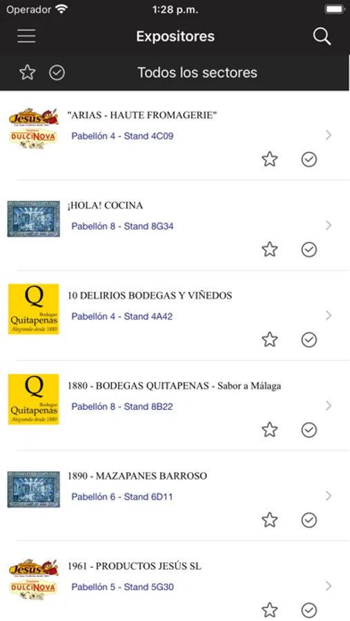 - Información detallada de Expositores, búsquedas por Pabellón, stand, marca, producto...