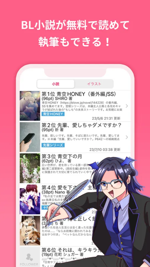BLoveは、BL小説(ボーイズラブ小説)・腐女子向けの小説・恋愛小説がスマホひとつで無料で読むことが出来ます!