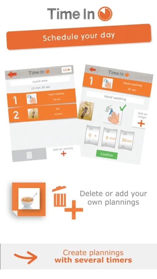 Hours and minutes are an abstract concept which is used to cut time and which requires learning. Particularly suitable for children and anyone who has difficulty understanding the concept of time, Time in ™ gives form and meaning to the activity in progress for those who do not master this learning.