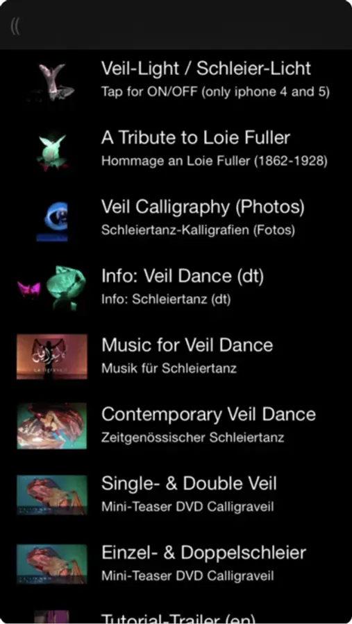 Additionally you will find information about the Calligraveil DVD: Single and Double Veil Dance.