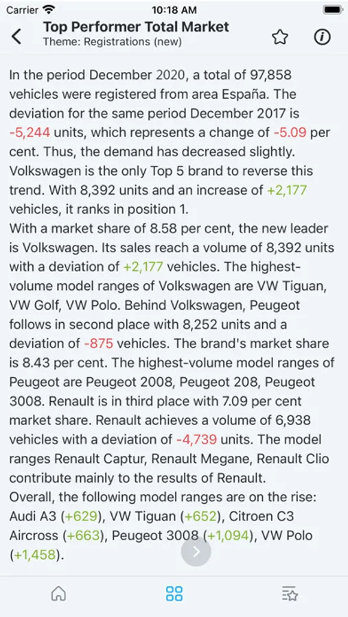 Compact layouts within tables, portfolios and numerous types of charts give you the perfect overview of your vehicle market. You can pin important information straight to your home page.