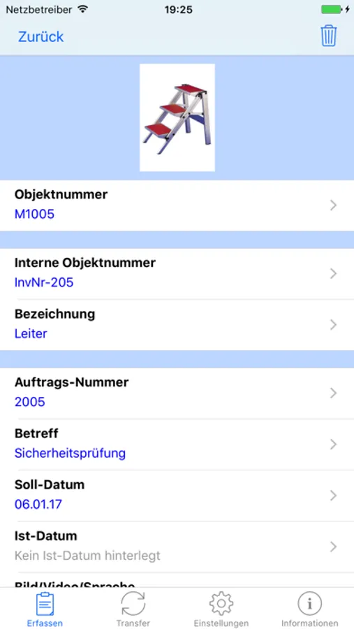 Verwaltet werden: Prüfgegenstände wie Krane, Stapler, Leitern Tritte, Druckbehälter