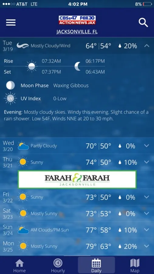 Get the most accurate Jacksonville-area forecast in town with the First Alert Weather App from Action News Jax - WJAX/WFOX. The app features the forecast from your neighborhood, live radar, breaking weather alerts, live streaming video from Chief Meteorologist Mike Buresh and the First Alert weather team.